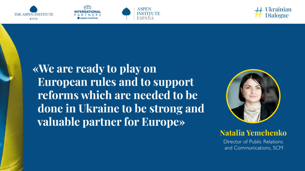 Aspen Institute Kyiv started the series of panel discussions with Aspen Network international partners — #UkrainianDialogue. Their goal is to share the personal stories of Ukrainians who help to defend freedom of our country and to have a two-way communication with other countries that support us. Natalya Yemchenko was the speaker of the first discussion, which was held with Aspen Institute Spain. Natalya talked about Russia’s aims at this war, importance of the economical front and readiness of big Ukrainian business to play European rules.
