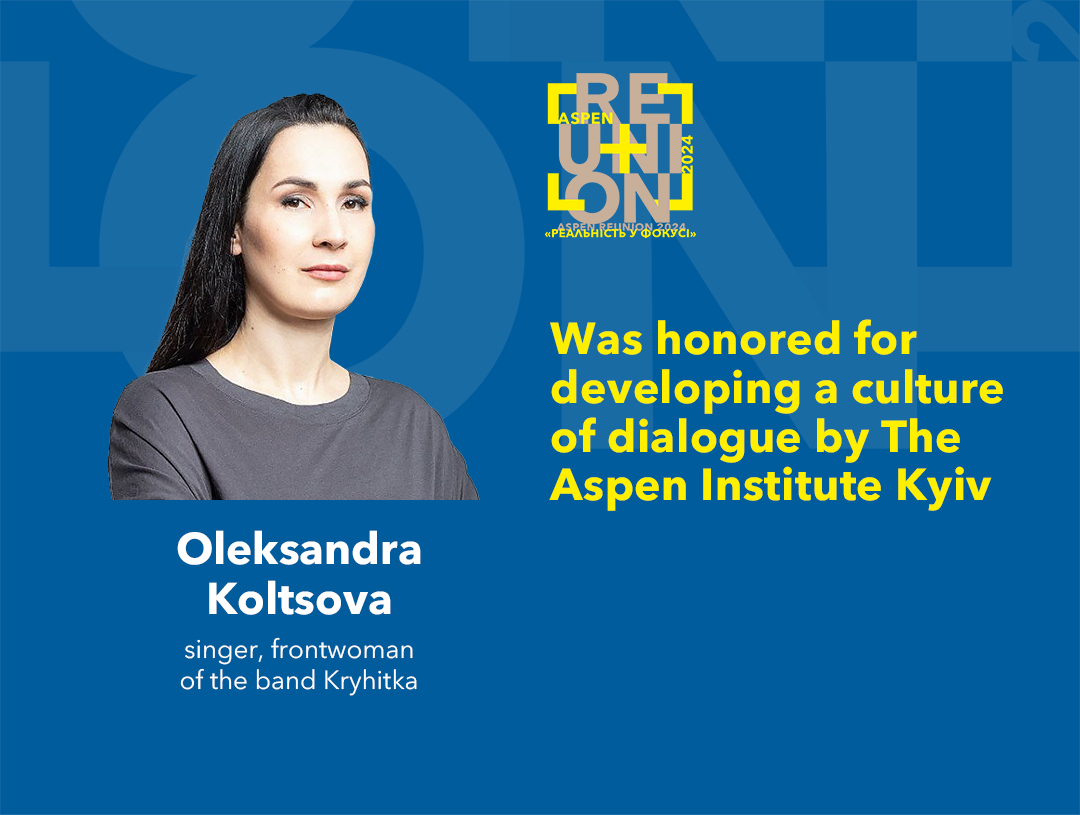 The Aspen Institute Kyiv annually honors community members who have demonstrated value-based leadership. This year, Oleksandra Koltsova, singer and frontwoman of the band Kryhitka and alumna of the seminar “Responsible Leadership”—16, received the award for developing a culture of dialogue.